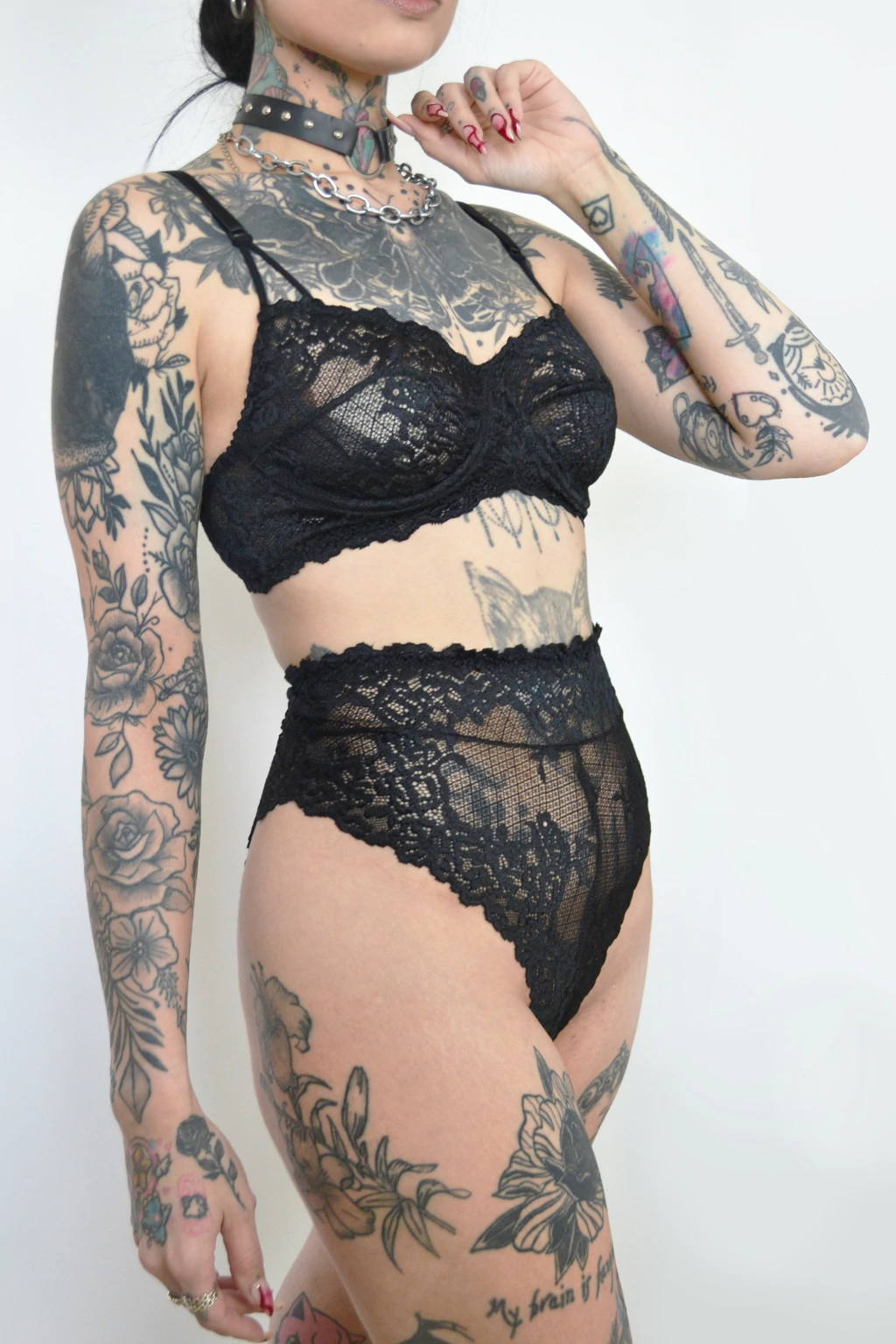 Modelo cós super alto - confeccionado em renda poliamida na cor preta* - com muito elastano e toque extremamente macio. Modelagem cavada do jeito que amamos - perfeita para amantes de peças high waist. Focada no conforto, é um must have no seu guarda roupa. Fundilho 100% algodão.