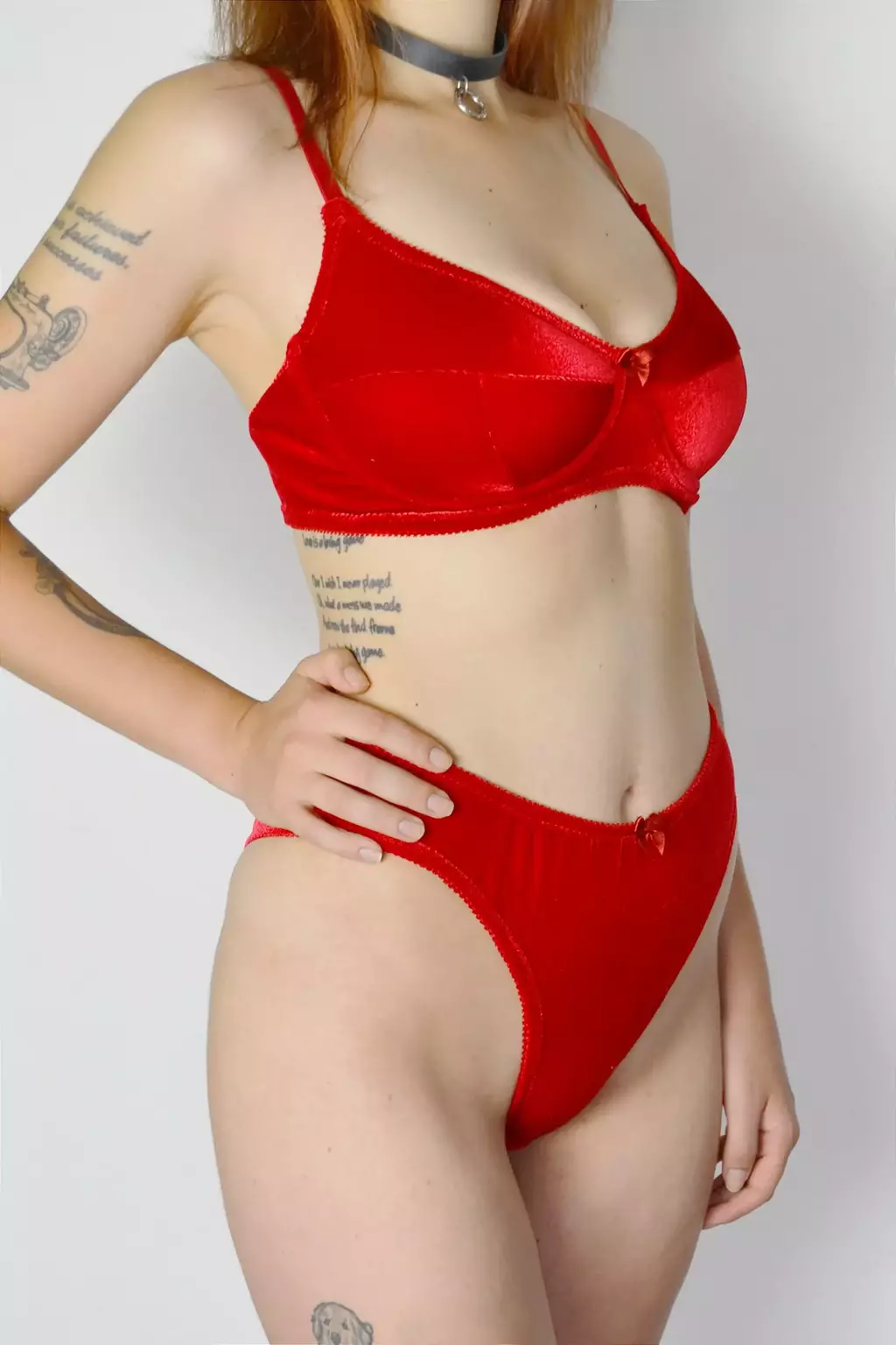 Modelo biquíni, modelagem alta com laterais mais larguinhas e levemente cavada. Confeccionada inteiramente em veludo de excelente elasticidade e toque macio na cor vermelho rubi* e lacinho de cetim na cor vermelha* no centro. Tecido sem transparência e ligeiramente mais grosso. Modelagem pensada no conforto. Peça não fio dental e com fundilho mais larguinho - fundilho 100% algodão.